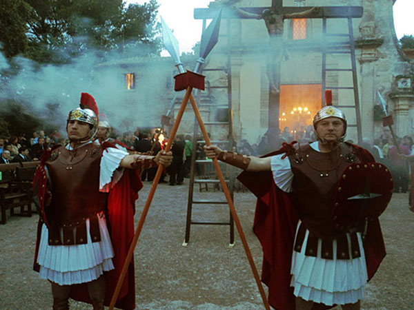 A statue of Jesus is removed from the cross, laid in an illuminated sarcophagus, and carried down the Calvary Hill, in absolute silence, accompanied by hundreds of festively dressed and masked torchbearers. This is indeed a most impressive and noteworthy spectacle, and it is also broadcast live on the local TV station, IB3.