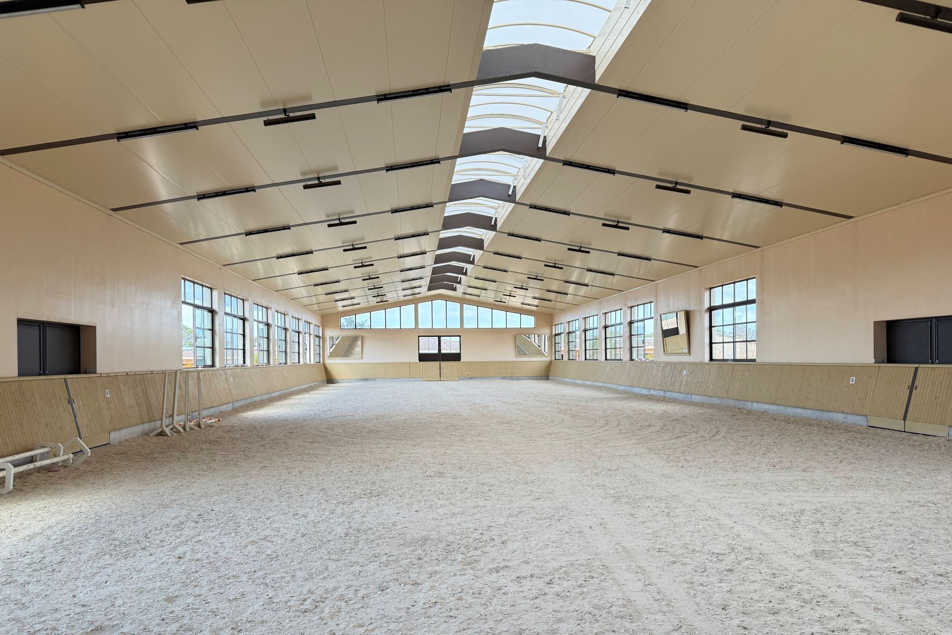 A particular highlight is the fully equipped equestrian facility with around 5,000 sqm of built-up area and 50 horse stalls, divided into five U-shaped buildings including a forecourt. The spacious riding hall (60 x 20 m) has an extension of approx. 800 sqm on 2 floors and offers a wide range of uses – including for other animal husbandry.
