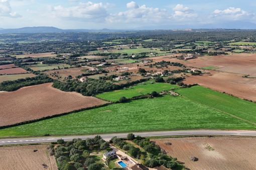 This finca building-plot has a generous area of 54,142 sqm, and is located close to Manacor. The approved basic project foresees a barrier-free, single-level house with an L-shaped living area of 270 sqm. This consists of 4 spacious bedrooms, 2 of which each have en-suite bathroom with the other 2 sharing a bathroom, plus a guest WC, so that the property will be ideal for families or visitors.