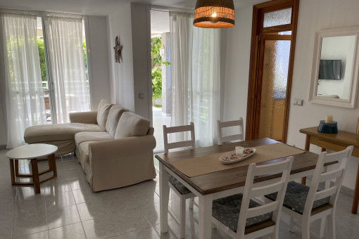 This ground floor apartment is only 50 m away from the sandy beach of Playa de Muro and offers an approx. 200 sqm well-kept garden with lawn, barbecue area and palm trees.