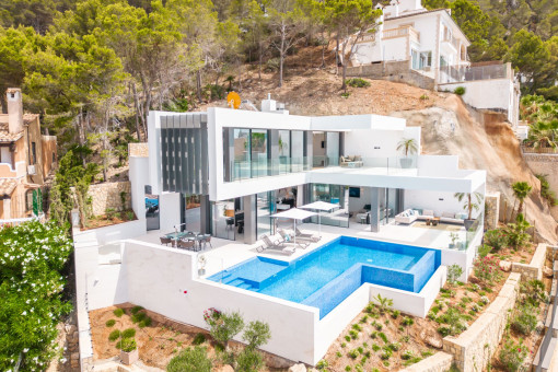 Experience exclusive luxury amidst the fascinating landscape of Port d'Andratx with this breathtaking villa. Built in 2023, it presents a masterpiece of modern architecture and sets new standards in terms of design and living comfort. Nestled in the prestigious location of Puerto Andratx, it offers far more than just exceptional living space.
