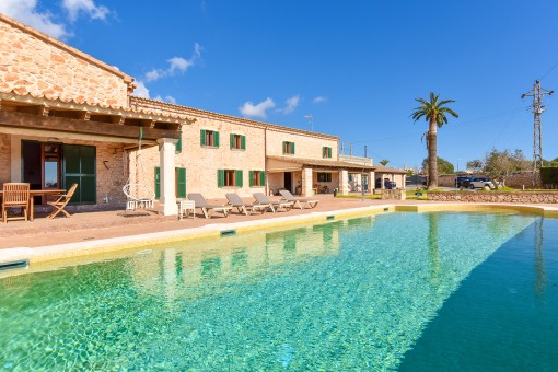 The natural preserve of Mondragó is nearby offering numerous routes for hikers, whereas the idyllic bays at the east coast, as Cala Santanyí or Cala Llombarts are perfect for bathing. The harbour of Portocolom and the golf course of Vall d’Or are at a short distance.