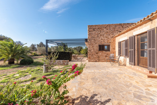 Directly accessible from the living/dining area is a beautiful patio which underlines the Mallorcan character of the finca, with a special feature provided by numerous covered terraces providing diverse tranquil retreats. The garden presents a real oasis of peace embellished by local plants and flowers, with the pool with sun terrace inviting to relax and enjoy the Mallorcan climate.