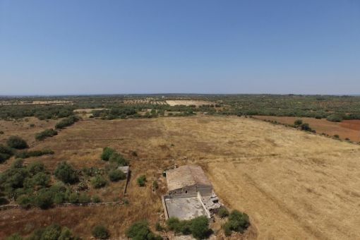 Flat plot with good access in a beautiful location between Santanyí and Ses Salines. From this plot, you quickly reach the cities of Campos, Santanyí, Ses Salines and the dreamlike beach of Es Trenc is also 10 min. away. The airport of Palma de Mallorca is only 30 min. away. The plot comprises an old tree population and a storage building. It is possible to have a connection to the mains electricity and water. A well with a permission for daily 40 cbm of water is available.